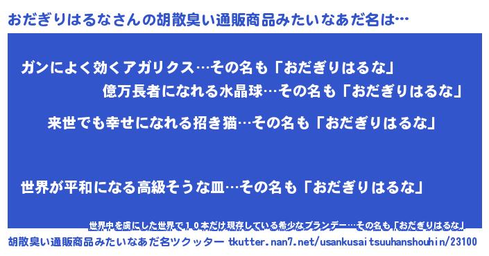 | 意味不明あだ名 | 『永久保存おだぎりはるな』 |