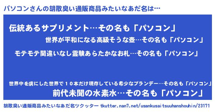 | ヒーロー風カッコイイあだ名 | 『スーパーパソコン』『幻影騎士パソ』 |