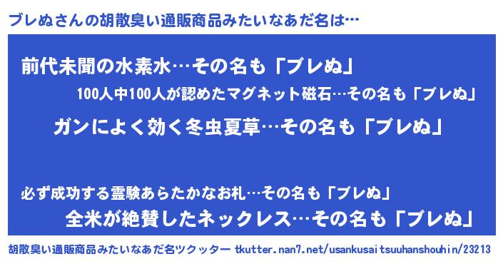| 意味不明あだ名 | 『自称ブレぬ』『永久保存ブレぬ』 |