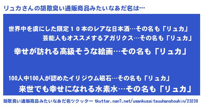 | 意味不明あだ名 | 『リュカフォーエバー』『永久保存リュカ』 |