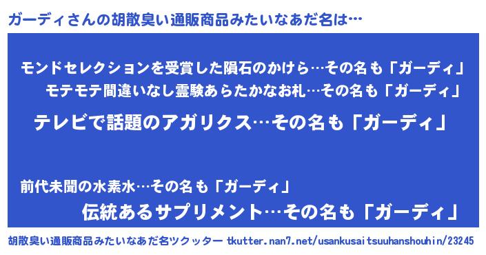 | 男性向けラノベタイトル風あだ名 | 『ガーディに滅ぼされるだけの簡単なお仕事です』 |