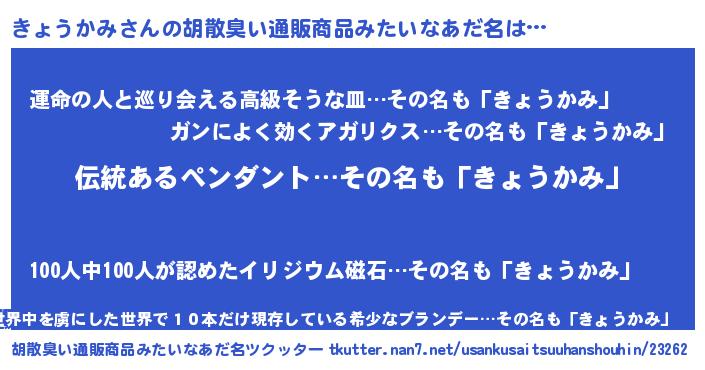 | 意味不明あだ名 | 『とにかく怪しいきょうかみ』 |