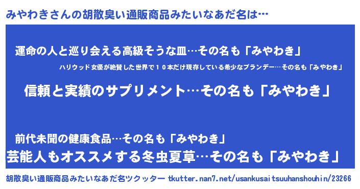 | 意味不明あだ名 | 『とにかく怪しいみやわき』 |