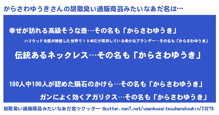 からさわゆうきさんの胡散臭い通販商品みたいなあだ名をツクッター!