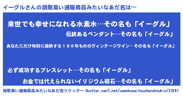 | ヘコむあだ名 | 『イーグル(笑)』『イーぷりん』 |