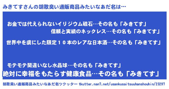 みきてすさんの胡散臭い通販商品みたいなあだ名をツクッター!