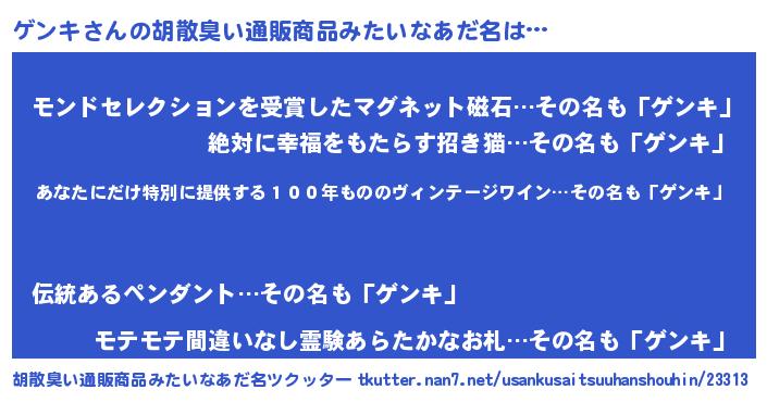 | ヘコむあだ名 | 『ゲンにー』『ゲンキ(遠い目)』 |
