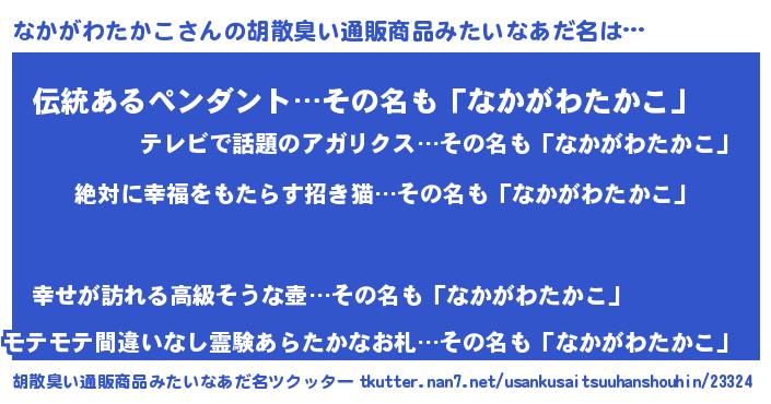 | 意味不明あだ名 | 『永久保存なかがわたかこ』 |
