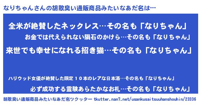 | ヘコむあだ名 | 『なりちゃん(小並感)』『なりぷりん』 |