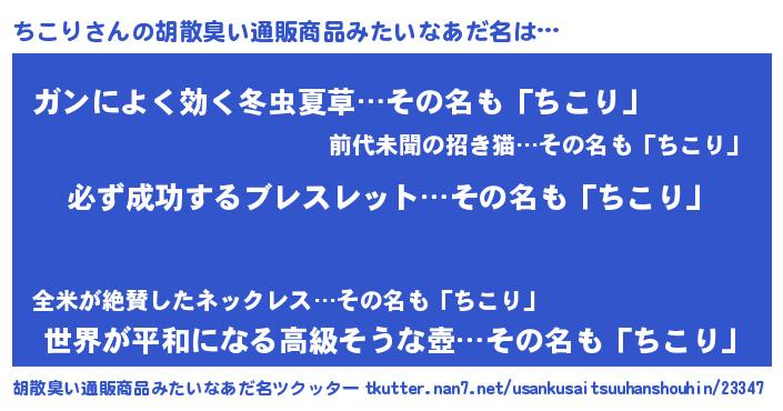 | 意味不明あだ名 | 『ペロリンちこり』『自称ちこり』 |
