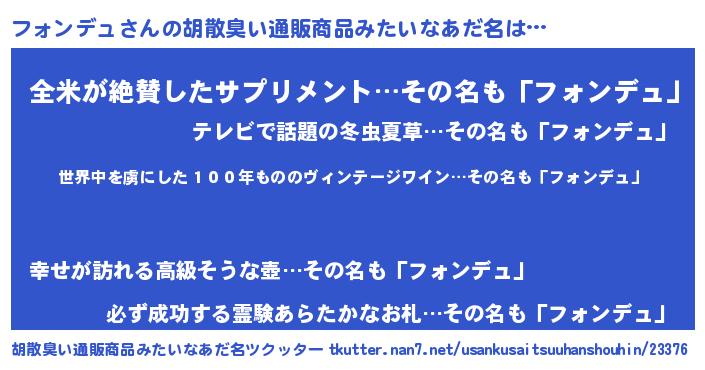 | 欧米人風あだ名 | 『ダレノガレフォンデュ』 |