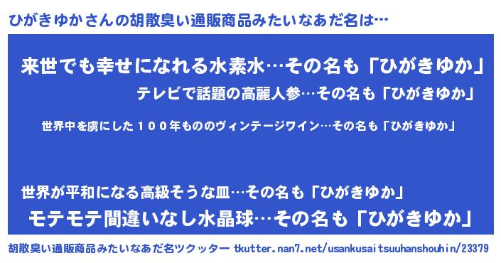 | 女子向けラノベタイトル風あだ名 | 『乙女ゲームの破滅フラグしかない悪役ひがきゆかに転生してしまった…』 |