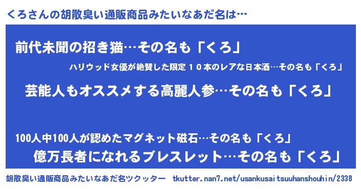 | 意味不明あだ名 | 『自称くろ』『永久保存くろ』 |