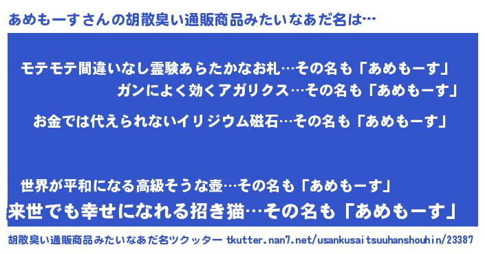 あめもーすさんの胡散臭い通販商品みたいなあだ名をツクッター!