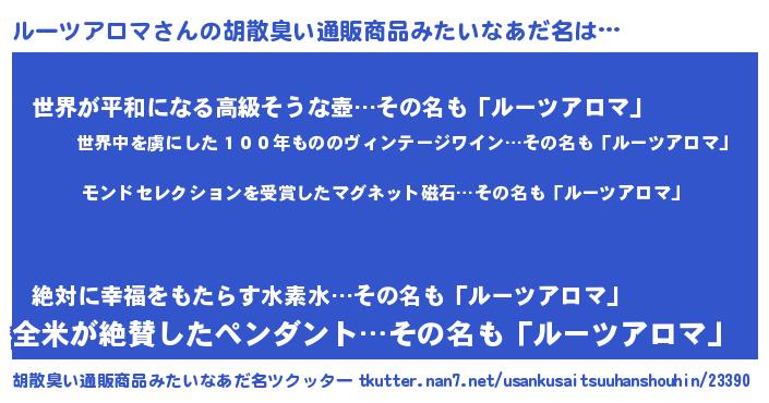 | 伝説のあだ名 | 『救世主となる技術者ルーツアロマ』 |