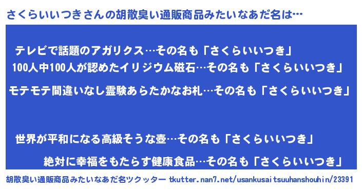 | ヘコむあだ名 | 『さくもー』『さくらいいつき(爆)』 |