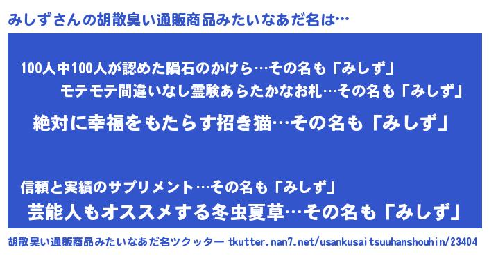 | ヒーロー風カッコイイあだ名 | 『ネオミシズ』『慈愛の使者みしず』 |