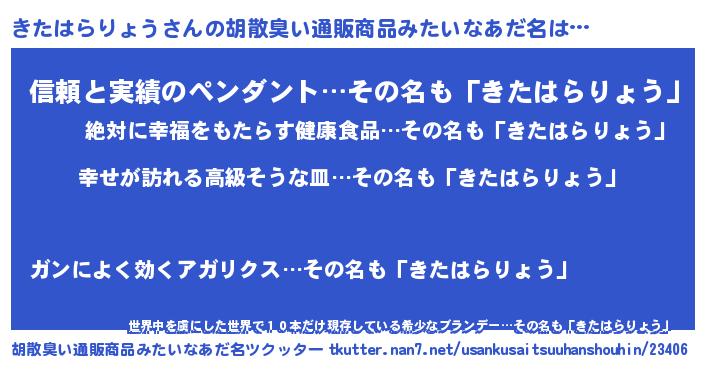 | 女子向けラノベタイトル風あだ名 | 『きたはらりょうの雑貨屋さん』 |