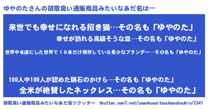 | 欧米人風あだ名 | 『ゆやのた・ステッグマイヤー』 |