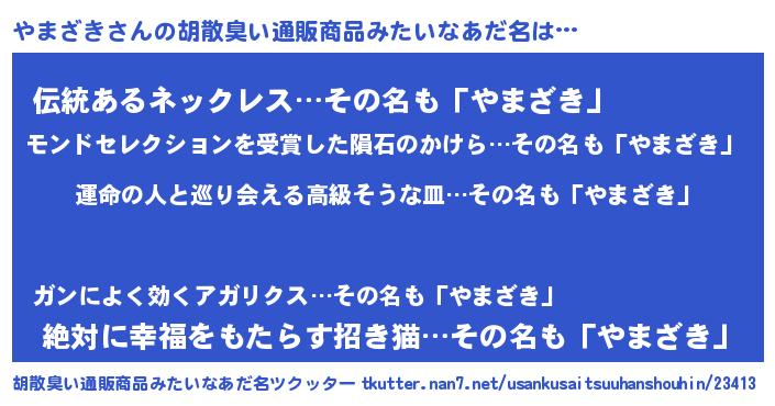 | ヘコむあだ名 | 『酢こんぶ』『やまお』 |