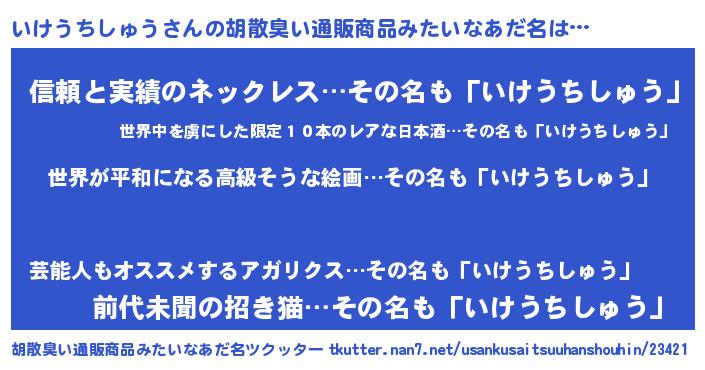 | ポケモン風あだ名 | 『イケウダネ』『ヒイケウチシュウ』 |
