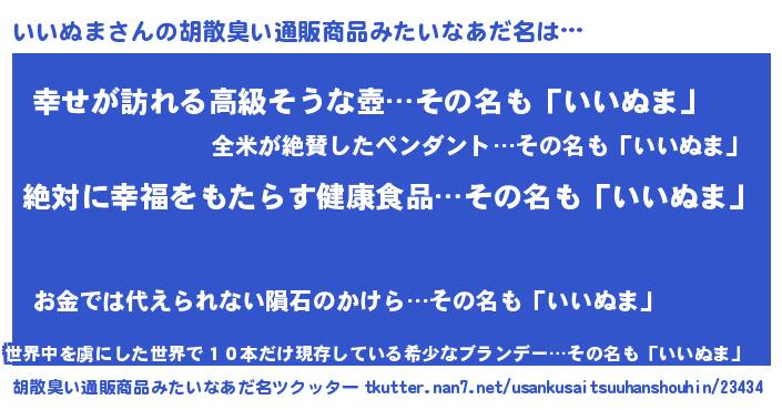 | 男性向けラノベタイトル風あだ名 | 『イイヌマスレイヤー』『緋弾のイイヌマ』 |