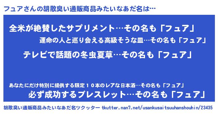 | ヘコむあだ名 | 『フュぷりん』『フュっふぃ~』 |