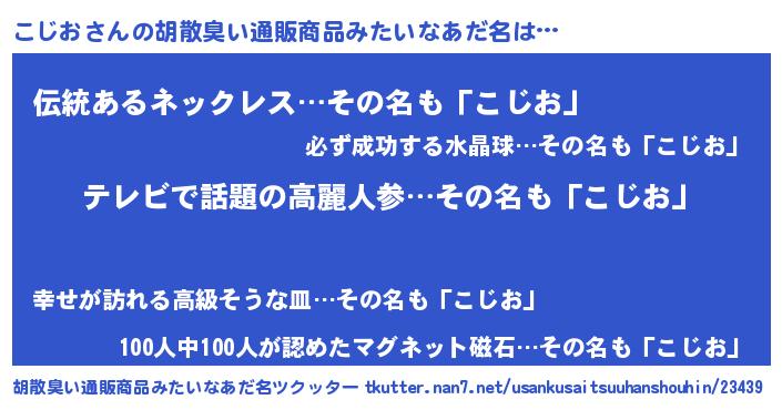 | 女子向けラノベタイトル風あだ名 | 『闇のこじお』『こじおは平凡を望む』 |
