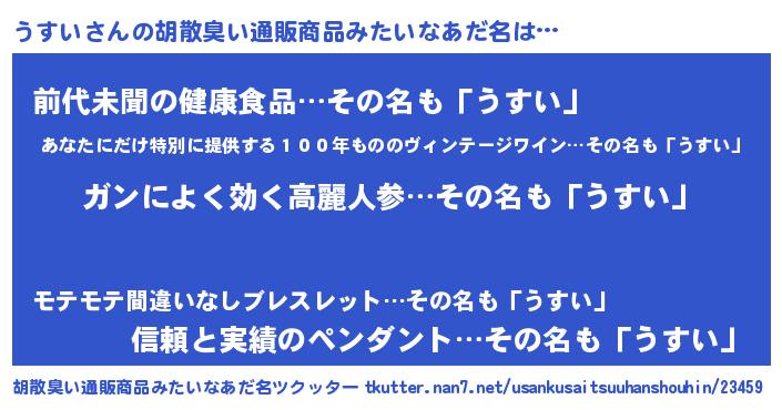 | 意味不明あだ名 | 『自称うすい』『永久保存うすい』 |