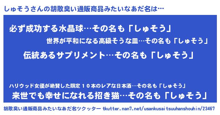 | ピコ太郎風あだ名 | 『シュ次郎』『シコ史郎』『ピコシ郎』 |