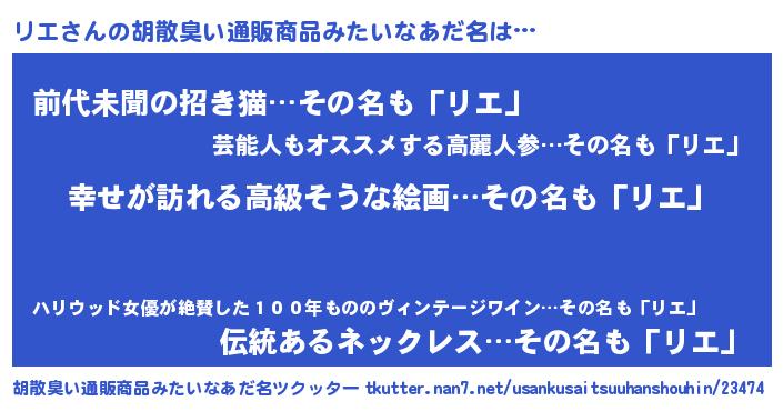 | ヘコむあだ名 | 『つくし』『リエ(苦笑)』『リエを』 |