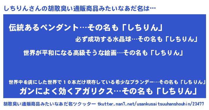 | 意味不明あだ名 | 『しちりんフォーエバー』『自称しちりん』 |
