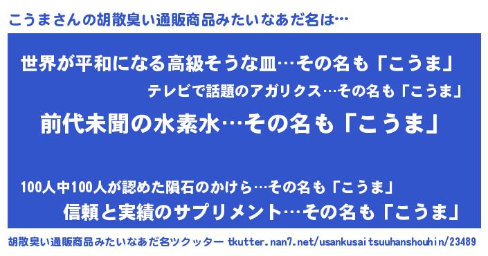 | 意味不明あだ名 | 『永久保存こうま』『こうまフォーエバー』 |