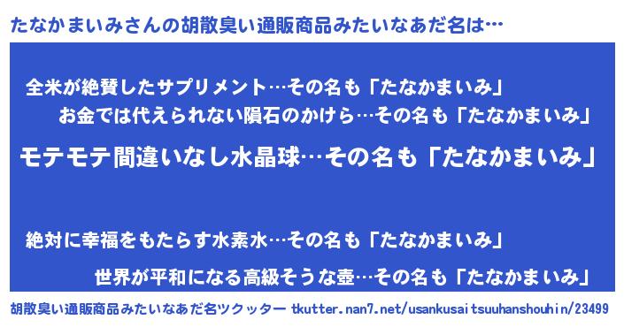 | 恥ずかしいあだ名 | 『プリティーたなかまいみ』『たなっちょ』 |