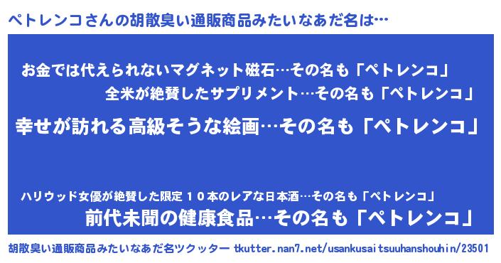 | ヒーロー風カッコイイあだ名 | 『ウルトラペトレンコマン』 |