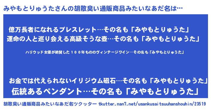 | 欧米人風あだ名 | 『ダレノガレみやもとりゅうた』 |