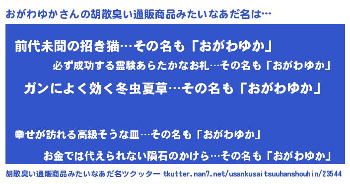 | ヘコむあだ名 | 『おがわゆか(遠い目)』『おがにー』 |