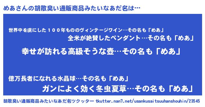 | 可愛いあだ名 | 『めあちー』『めあぷりん』 |