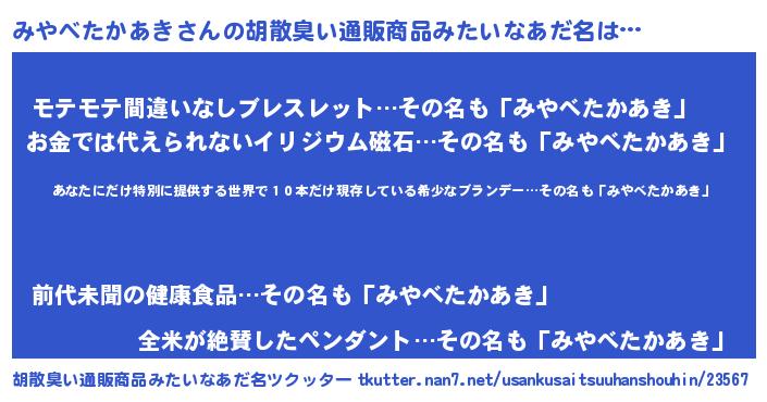 | ヘコむあだ名 | 『みやっふぃ~』『みや太郎』 |