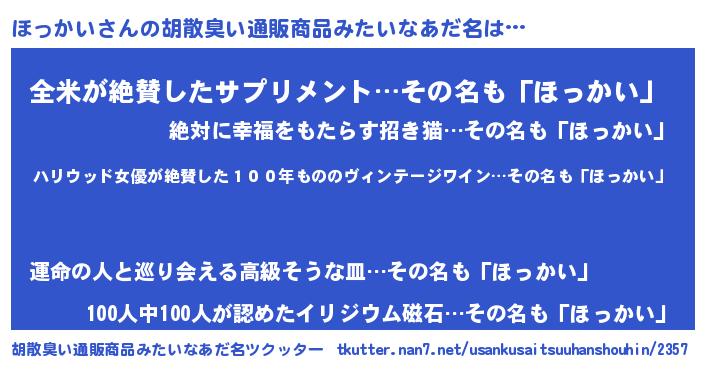 | 意味不明あだ名 | 『住所不定無職ほっかい(4歳)』 |