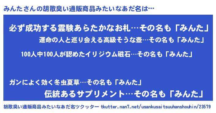 | 欧米人風あだ名 | 『アンジェラ・みんた』『ダニエルみんた』 |