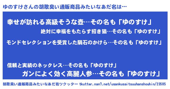 | ヒーロー風カッコイイあだ名 | 『天空の使者ゆのすけ』『ネオユノスケ』 |