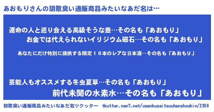 | 意味不明あだ名 | 『住所不定無職あおもり(41歳)』 |