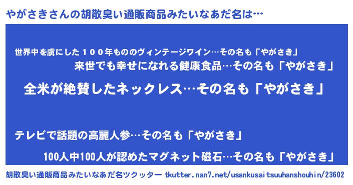 | ヘコむあだ名 | 『やが太郎』『やがさき(笑)』 |