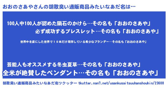 | 意味不明あだ名 | 『住所不定無職おおのさあや(86歳)』 |