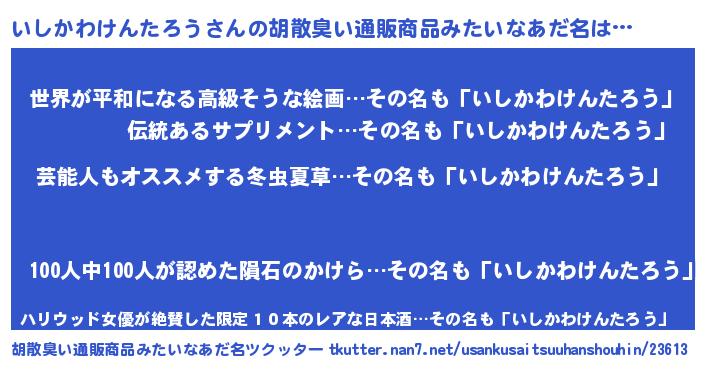 | 意味不明あだ名 | 『自称いしかわけんたろう』 |