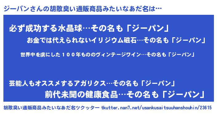 | 意味不明あだ名 | 『住所不定無職ジーパン(11歳)』 |