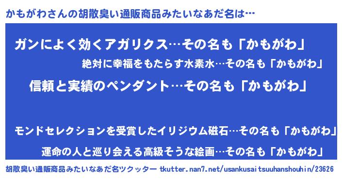 | 意味不明あだ名 | 『とにかく怪しいかもがわ』 |