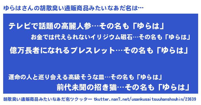 | 意味不明あだ名 | 『つくし科ゆらは属』『ペロリンゆらは』 |