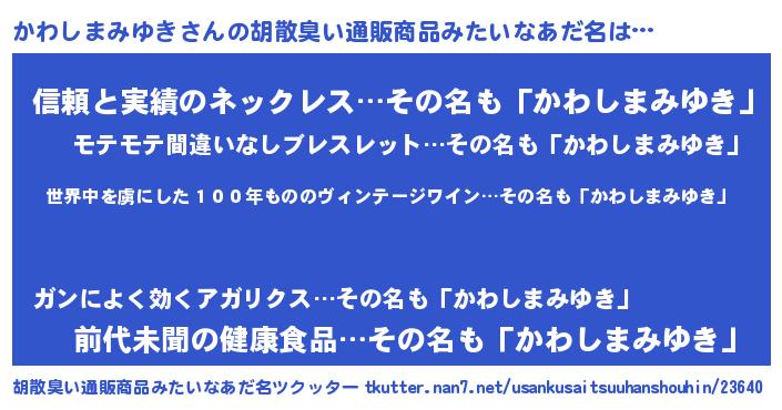 | 伝説のあだ名 | 『解き放たれた魔法使いかわしまみゆき』 |